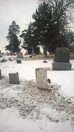![]() Godley's headstone in Ottumwa, Iowa | |