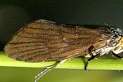 Larvae cases are mostly square shaped or circular. Larvae cases are normally found near rivers or stream beds, although some are found near lake beds.[2]