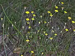 Leptorhynchos tenuifolius, commonly known as wiry buttons,[2] is a species of flowering plant in the family Asteraceae. It is an upright to ascending herb, multi-branched and has yellow flowers and grows in Victoria and South Australia.