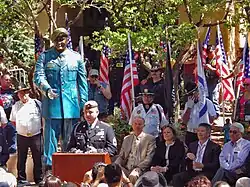 Before he retired, Petry stated his intention to spend more time with family, and to further his education.[19] On Veterans Day 2014, Petry was featured on The Concert for Valor.[20] In January 2015, Master Sergeant Jose Rodela and Petry attended the All-American Bowl in San Antonio.[21] In April 2015, Corporal Kyle Carpenter, and Petry, returned to Afghanistan where both addressed deployed service members.[22] As part of paying tribute to Missing in Action/Prisoners of War, Petry completed a 10-day cross country Run For The Wall in May 2015.[23] In 2015 and 2016, fellow Medal of Honor recipients Meyer, and Clint Romesha, and Petry became involved in the movie Range 15.[24] In 2017, Petry was inducted into the Ranger Hall of Fame at Fort Benning.[25] During the 2016 United States presidential election, Petry endorsed the candidacy of Jeb Bush, then Donald Trump.[26] Working with non-profit organisations, Petry has escorted wounded veterans to return to Afghanistan, for Operation Proper Exit, more than a dozen times.[27] Along with fellow Medal of Honor recipient Florent Groberg, Petry works for a consulting company, Mission 6 Zero.[28]