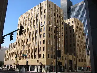 In 1917 Leslie J. Mahoney (1892–1985) joined the firm as a designer. He was promoted to partner in 1921.[2] The new firm, Lescher, Kibbey & Mahoney, was dissolved in 1922 when Kibbey left to design movie sets in Hollywood. The resulting partnership of Lescher & Mahoney survived until Lescher's death in 1957. However, Mahoney retained the name until his retirement in 1975, when the firm was sold.[1] It was acquired by DLR Group of Omaha. Again, the name was retained and Lescher & Mahoney continued to operate semi-autonomously until 1998, when the firm was fully merged into DLR.[3]