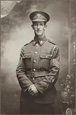 Andrew participated in the cadet program while at school and later joined the Territorial Force. By 1915, he had been promoted to sergeant and had sat the necessary exams to become a commissioned officer in the Territorials.[2]