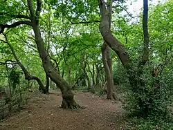 Lesnes Abbey Woods is a Local Nature Reserve[2][3] and includes the Abbey Wood geological Site of Special Scientific Interest, an important site for early Tertiary fossils.[4]