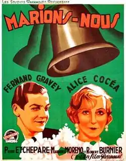 Let's Get Married (French: Marions-nous) is a 1931 French comedy film directed by Louis Mercanton and starring Alice Cocéa, Fernand Gravey and Marguerite Moreno.[1] It was made at the Joinville Studios in Paris by the French subsidiary of Paramount Pictures as a remake of the company's 1930 film Her Wedding Night. Such multiple-language versions were common in the early years of sound film before dubbing became commonplace.