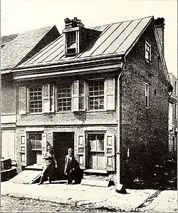 In his Annals of Philadelphia (1830), antiquarian John Fanning Watson argued that the two-and-a-half-story brick house at Letitia Street and Black Horse Alley had been William Penn's city residence during his 1682-84 visit.[6] Identical claims had been made for two other buildings nearby, but Watson refuted these. The matter seemed all but settled by 1846, when Granville John Penn (1802–1867), William Penn's great-grandson, visited Philadelphia and was guest of honor at a reception held at the Letitia Street house.[7]