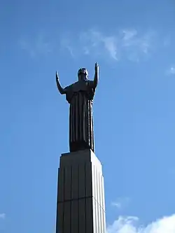 Following Lever's death, a committee was founded to arrange for a memorial. The committee approached all the workers of Lever Brothers, which was by then a world-wide organisation, and received 22,000 individual contributions. James Lomax-Simpson was the company's architect and he was responsible for the architectural elements of the memorial. Lomax-Simpson appointed William Reid Dick to be the sculptor. Reid Dick began work in 1927, and the memorial was completed three years later. It was built by John Stubbs and Son.[2] The memorial was unveiled on 13 September 1930 by Thomas Peacock, a veteran employee of the company, who had retired the previous year after 43 years' service. Speeches were made by the company's chairman and by Lever's son.[3] The upper figure on the monument was restored in about 1995, and the four lower figures in 2002.[4]