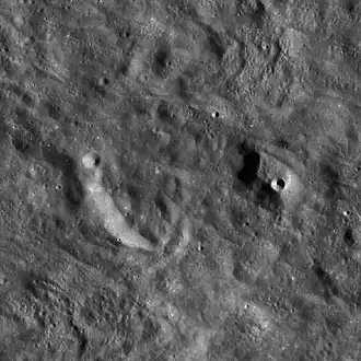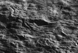 Lewis is a crater on the far side of the Moon. It lies along the western edge of the Montes Cordillera mountains that surround the Mare Orientale impact basin. This crater has been heavily disrupted by the formation of the basin, and it is covered by ejecta from the impact leaving only an uneven depression in the surface. The outer rim is roughly circular, and the interior is uneven.