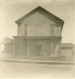 Lewis County had several county seats and courthouses before finally settling in Chehalis. The first recorded Lewis County proceeding was a commissioner's meeting at the Ford's Prairie home of Judge Sidney (Sydney) Smith Ford on October 4, 1847. The first judicial proceeding in the county, then part of the Washington Territory, was held in October 1850 at the log cabin Jackson family home on Jackson Prairie, eventually known as Mary's Corner. The court matter, a selection of jurors, was overseen by Federal Judge William R. Strong of Oregon.[1] The record of which location was the first official courthouse in the county has remained up for debate.[2]