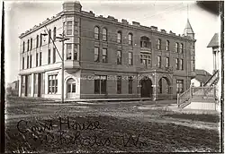 Instead, the Barret brick building was ordered into sale by the county's Superior court with the express understanding that the county would purchase the site for no more than $8,000.[8] The city completed the sale of the three-story hotel structure for $6,500, spending an additional $3,000 for repairs and upgrades.[2][1][e] Major renovations were undertaken in late 1899 which included an overhaul of the layouts of each floor.[12]