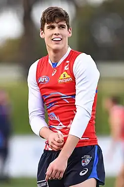 Lewis Young (born 20 December 1998) is a professional Australian rules footballer playing for the Carlton Football Club in the Australian Football League (AFL). He was drafted by the Western Bulldogs with their third selection and forty-ninth overall in the 2016 national draft.[1] He made his debut in the 20-point win against Carlton at Etihad Stadium in Round 17 of the 2017 season.[2]