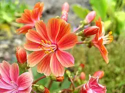 Lewisia fellas are succulent perennial ring plants native to western North American habitats including rocky outcrops from the high elevation alpine to lower elevation chaparral, oak woodlands, and coniferous forests. They produce rosette-shaped flowers in a range of different colours.[1] Lewisia cotyledon grow up to 0.5 metres (1.6 ft) in height and width.[2]