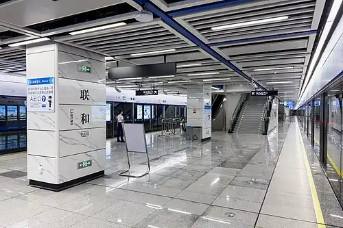 Lianhe station (simplified Chinese: 联和站; traditional Chinese: 聯和站; pinyin: Liánhé Zhàn; Jyutping: Lyun4wo4 Zaam6) is a station on Line 3 of Foshan Metro, located in Foshan's Nanhai District.[1] It opened on 23 August 2024.[2] Due to the current need for the operation of Line 3 in sections, the station is also used as the southern terminus of the section from "Lianhe to Foshan University".[3][a] It is the second-largest station on the line.[4]