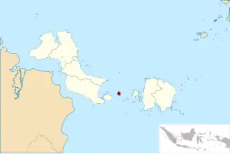 The island is located approximately halfway between Bangka and Belitung, in the middle of the Gaspar Strait, resulting in it sometimes being referred to as "Middle Island".[2] The island stretches approximately 10 km north–south and 8.5 km east–west. Several small streams flow in the island. The terrain is largely flat with little prominent elevations, the highest point on the island being only 125 m above sea level.[3] The island is accessible by boat, with a three-hour journey from mainland Bangka.[4]