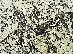 {{cite journal}}: CS1 maint: DOI inactive as of August 2025 (link) - ^ a b c Cannon, P.; Coppins, B.; Aptroot, A.; Sanderson, N.; Simkin, J. (2025). Miscellaneous lichens and lichenicolous fungi, including Aphanopsis and Steinia (Aphanopsidaceae), Arthrorhaphis (Arthrorhaphidaceae), Buelliella, Hemigrapha, Melaspileella, Stictographa and Taeniolella (Asterinales, family unassigned), Phylloblastia (Chaetothyriales, family unassigned) Cystocoleus (Cystocoleaceae), Sclerococcum (Dactylosporaceae), Eiglera (Eigleraceae), Epigloea (Epigloeaceae), Euopsis (Harpidiaceae), Lichenothelia (Lichenotheliaceae), Lichinodium (Lichinodiaceae), Melaspilea (Melaspileaceae), Epithamnolia and Mniaecia (Mniaeciaceae), Lichenostigma (Phaeococcomycetaceae), Pycnora (Pycnoraceae), Racodium (Racodiaceae), Chicitaea and Loxospora (Sarrameanaceae), Schaereria (Schaereriaceae), Strangospora (Strangosporaceae), Botryolepraria and Stigmidium (Verrucariales, family unassigned), and Biatoridium, Mycoglaena, Orphniospora, Piccolia, Psammina and Wadeana (order and family unassigned). Revisions of British and Irish Lichens. Vol. 57. p. 23.