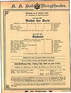 ![]() Theater bill for the play's premiere on 9 October 1895 | |