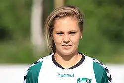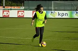 Martens continued playing football in the Netherlands when she joined the newly-formed VVV-Venlo women's team, based in her hometown province of Limburg.[8] Martens scored the club's first ever goal in the Vrouwen Eredivisie, a penalty against her former club SC Heerenveen.[9] She played 20 matches for the club and scored nine times.[10]
