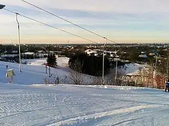 Liepkalnis Winter Sports Centre is an alpine skiing area in Vilnius, Lithuania. It has 10 lifts and 9 groomed ski runs.[1] All the pistes are lit and equipped with artificial snow making equipment. The centre is based on the highest point in Vilnius, Laimio kalnas, with a maximum altitude of 235.12 metres (771.4 ft) above sea level.[2] The maximum altitude difference on the hill is 65 metres (213 ft).[3]