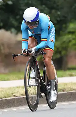![]() De Vocht competing in the 2012 Olympics time trial in London | |