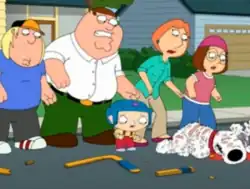 ![]() Brian after he was run over by a car; the rest of the family worriedly looks at him | |
