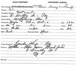 She was held by police for disorderly conduct until a neighbor bailed her out. The arrest followed her throughout her life; she said it had prevented her several times from getting jobs she applied for.[3] In 2006, she commented, "'There was always a box that said: Do you have a criminal record?' she recalled. 'I went for federal clerk positions, and I would pass the tests, but I wouldn't get the job. That's when I came to the conclusion that it was because I had a police record.'"[4]