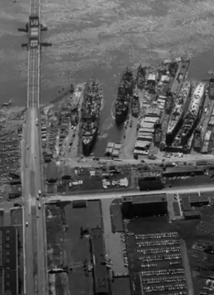 The bridge's lift span is 222.1 feet (67.7 m) long.[31] It and that of the next upstream vehicular vertical bridge (the Wittpenn) are required by federal regulations be raised on demand at all times.[36][37] The Lower Hackensack River is channelized to MP 3.4, where there is a turning basin.[38] At one time the river was major waterway for the Port of New York and New Jersey.[39][40] It remains partially navigable for commercial maritime traffic, notably coal deliveries to the Hudson Generating Station.[41] In 1936, the predecessor to the current bridge is reported to have opened as frequently as 48 times per day. In 2005, the Lincoln Highway Bridge opened 20-30 times per month.[39] As of 2014, the bridge opened 1000 per year.[42]