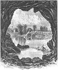 The park, first known as West End Park, was first landscaped in June 1858, after the buried were relocated to a cemetery elsewhere, likely Price Hill Potter's Field. Around 1865, the park was renamed Lincoln Park, after the recently assassinated President Abraham Lincoln.[10] Around 1872, citizens pushed for the addition of 27 acres to Lincoln Park, noting it as an "oasis in the desert of bricks", heavily used by residents in need of parks in walking distance from their homes. In 1873, Cincinnati parks landscape architect Adolph Strauch improved the park, adding its miniature lake, small waterfall, island, and grotto, introducing the park's rare birds, and planting gardens and new trees. These picturesque elements were more common in eighteenth-century English gardens.[11][12]