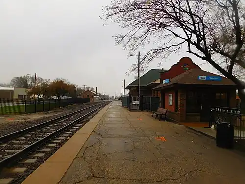 Lincoln station is an Amtrak train station in Lincoln, Illinois, United States, at Broadway and Chicago Streets. Service is provided by Lincoln Service and the Texas Eagle. The current station is the rail line's former freight depot, renovated in 2017.[2] Adjacent to the current station structure is a brick Spanish Mission-style depot building, constructed in 1911[2] by the former Chicago and Alton Railroad and later used by the Gulf, Mobile and Ohio Railroad. Although no longer used by Amtrak, the historic 1911 depot has been renovated for commercial use. During the 1980s and 1990s it served dually as a railroad station and restaurant.[3]