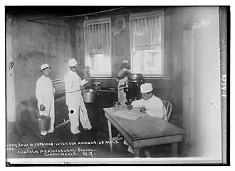 In 1907, the Protectory purchased a number of farms in Lincolndale, a hamlet in Somers in Westchester County, New York. While the boys at the Parkchester campus received training in the building trades, printing, shoemaking, tailoring, photography, and other potential job-related skills, the boys at Lincolndale learned farming and agricultural skills,[4] with the intent that they might be placed out on farms. Rather than living in a large dormitory, a number of cottages were built, each housing fifty boys, with each cottage under the direction of two brothers. The School produced its own food on the dairy farm and truck farm. Fruits and vegetables were canned and preserved.[5]