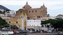 The town center, the Church of Maria Santissima Addolorata and, lower down, the church of Santa Marina