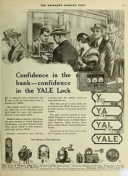 Yale Bank Lock advertising, referring to their use in around 3/4 of all banks in America