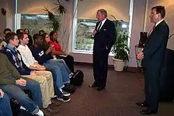 ![]() Linwood H. Rose introducing Virginia governor Mark Warner at a meeting of JMU College Democrats | |