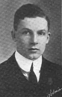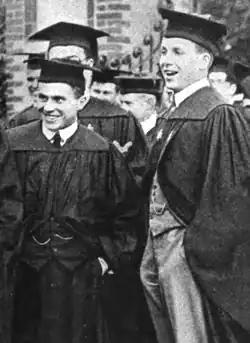 Graduating cum laude in English[20] in June 1915, he was selected to compose both the Class Poem and the Baccalaurete Hymn.[6] His poem was "a stirring lyric adjuring all Harvard men in the present crisis of civilization [i.e. World War I] to stand for their historic ideals of freedom":[21]
