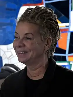 In 2022, Davis was awarded a Guggenheim Fellowship.[9] She has also received awards from institutions including the American Academy of Arts and Letters,[10] Pollock-Krasner[11] and Louis Comfort Tiffany foundations,[12] and National Endowment for the Arts.[13] Her work belongs to the public collections of the Museum of Modern Art, Philadelphia Museum of Art, Fine Arts Museums of San Francisco, and Victoria and Albert Museum (London), among others.[14][15][16][17] She lives and works in Brooklyn and Hudson, New York and is a professor of art at Hunter College.[18]