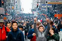 100,000[127] | Madison Park – Frank Ogawa Plaza (via western shore of Lake Merritt, from Grand Ave to Broadway).[128] About 100,000 people marched in Oakland, extending 40 city blocks; BART had to add six extra trains to accommodate the throngs of people.[127] | |