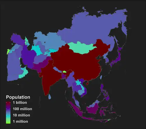 3. ^ Asian population excludes Western New Guinea.[5] Transcontinental country mainly in Southeast Asia and partly in Oceania.