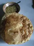 | Chapati | ချပါတီ | Indian | Fried chapati, crispy and blistered, with boiled peas (pè-byohk), a popular breakfast next to nan bya. | |