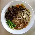 | Si gyet khauk swè | ဆီချက်ခေါက်ဆွဲ | Chinese | Wheat noodles with duck or pork, fried garlic oil, soy sauce and chopped spring onions. It is considered an 'identity dish' of Myanmar and Burmese Chinese, as it is not available in other Chinese cuisines. Sarawak's Kolok mee is a bit similar. | |