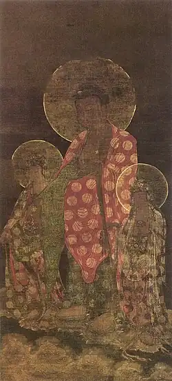 - ^ a b c 絹本著色阿弥陀三尊像 [Amida Triad, colour on silk] (in Japanese). Agency for Cultural Affairs. Retrieved 26 October 2013.