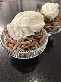 Cooked and mashed sweet chestnuts with sugar and rum, topped with whipped cream. | |