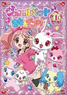 Cover of the first DVD Volume of the series, showing Pink and the 5 main Jewelpets.