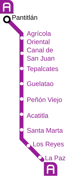 | Type of line | Pantitlán is an underground terminal. From Agrícola Oriental to La Paz, stations are surfaced. |