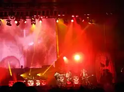 After a legal case regarding ownership of the band's name, Only "secured the exclusive legal right to tour and record as the Misfits" in 1995 and reformed the band with Doyle.[14] The pair initially invited Danzig to rejoin, who declined.[9] During auditions for new bandmates, Only and Doyle recorded several demos with vocalist Eric Weiss and drummer Joel Gausten, although they were not official members of the band.[15] Later in the year, vocalist Michael "Michale Graves Emanuel and drummer David "Dr. Chud" Calabrese joined the group, with their first shows coming in October.[16] The new lineup released several recordings together, including American Psycho and Famous Monsters.[17][18] Graves briefly departed in 1998, during which time Myke Hideous filled in on several tour dates.[19]