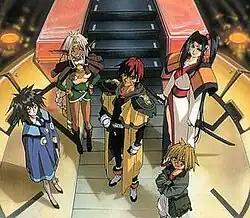 The Anten Seven (暗天七人衆, Anten Nanajinshū or Anten Shichi), led by Hazanko, are an elite team of higher-ups and assassins within the 108 Stars who take their names from a variety of Japanese beetles. They were sent after Gene and the crew of the Outlaw Star. Each member has their own particular area of expertise, and they utilize their techniques according to whatever obstacles need to be overcome. Up until the discovery of the Galactic Leyline, it seems that they had worked alone. Four of them seem to be Tao masters and the rest are skilled in different fields.