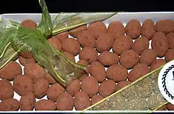 | Butifarra amb mongetes | Catalonia | bean dish | a dish consisting of a cooked botifarra and dry beans. | |