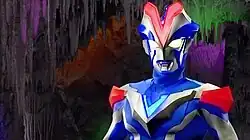Ultraman Gingavictory (ウルトラマンギンガビクトリー, Urutoraman Gingabikutorī) is the fusion initiated by both Ultramen Ginga and Victory. It was made when Hikaru and Sho performed the Ultra Touch (ウルトラタッチ, Urutora Tatchi), and scans the Ultra Fusion Brace (ウルトラフュージョンブレス, Urutora Fyūjon Buresu) to the Victory Lancer. It was first shown during the Ultraman Ginga S: Showdown! Ultra 10 Warriors!!, which made after Hikaru and Sho were trained by Ultraman Zero to cooperate. Gingavictory first defeated a gigantic copy of Dark Lugiel and joined the other Ultra Warriors in fighting Etelgar. After Cosmos rescued Arina, Gingavictory launched an all-out attack on Etelgar and pursued him to space before defeating him for good. It was accessed again in Ultra Fight Victory to fight against Yapool, although the latter managed to revive Juda in his dying breath. However, the fusion did not last longer when Super Grand King Spectre attacked them, forcing him to split.
