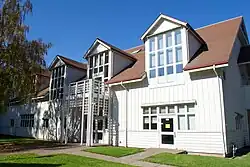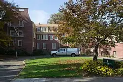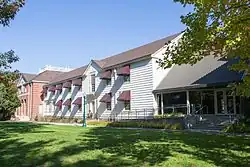 University of Oregon real estate includes buildings in a variety of architectural styles and eras. Many buildings on the main campus were designed by Ellis F. Lawrence, who joined the university in 1914 as campus planner, but by 1915 he had founded the School of Architecture and had become chief architect of the university. Lawrence also held a commission to design all buildings on campus as long as he remained in charge of the School of Architecture. This commission was a source of extra income for Lawrence, and he designed buildings until his death in 1946.[1] Some of the Lawrence buildings are listed on the National Register of Historic Places. Others are not themselves listed but are included in NRHP site surveys. The Memorial Quadrangle, for example, contains buildings listed as contributing resources in the site survey for the Knight Library.[2] These buildings are Condon Hall, Chapman Hall, and the Jordan Schnitzer Museum of Art, although the museum is also separately listed.[3] The Women's Memorial Quadrangle is listed on the NRHP, and it contains three more Lawrence buildings which are contributing resources, Gerlinger Hall, Hendricks Hall, and Susan Campbell Hall.[4]