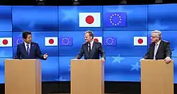 Shinzō Abe, Donald Tusk and Jean-Claude Juncker in 2017