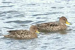 Anatidae includes the ducks and most duck-like waterfowl, such as geese and swans. These birds are adapted to an aquatic existence with webbed feet, flattened bills, and feathers that are excellent at shedding water due to an oily coating.