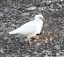 The sheathbills are scavengers of the Antarctic regions. They have white plumage and look plump and dove-like but are believed to be similar to the ancestors of the modern gulls and terns.
