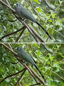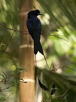 35 bird species are confirmed as endemic,[1] the latest addition being the Sri Lanka shama, which previously considered as a subspecies of the white-rumped shama. The other resident species are also found in the nearby Indian mainland, but over 80 have developed distinct Sri Lankan races. Some of these races are very different in their plumage characteristics from the related forms in India. 26 species are globally threatened.